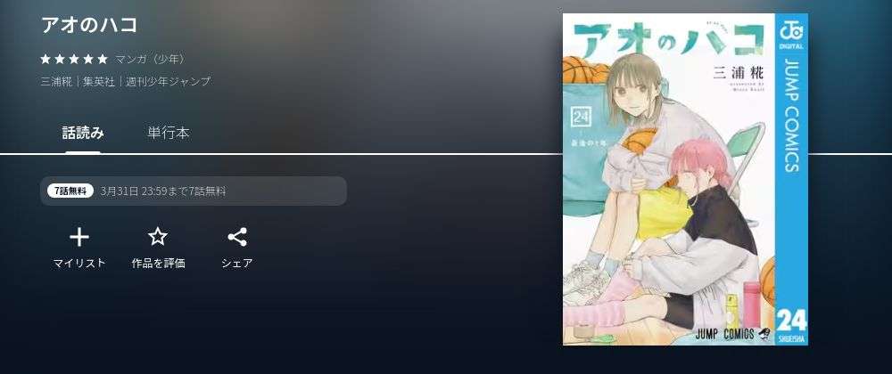 漫画「アオのハコ」はどこで一番多く無料で読める?