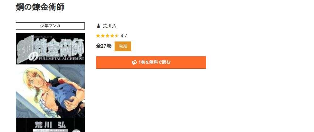 漫画「鋼の錬金術師」はどこで一番多く無料で読める?