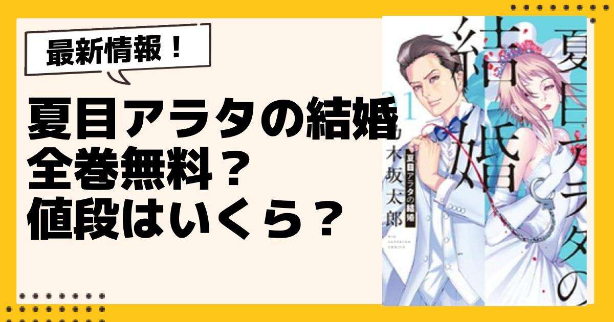 漫画「夏目アラタの結婚」は全巻無料で読める?一番多く無料で読めるサイトやアプリはどこ?全巻値段はいくら?電子書籍を全巻安く読めるキャンペーンや、コミック・単行本(新品・中古・レンタル)の最安値情報、漫画ロウ(raw)などの海賊版サイトの注意点、電子書籍からコミック・単行本まで「夏目アラタの結婚」を一番お得に楽しむ方法を徹底解説します。