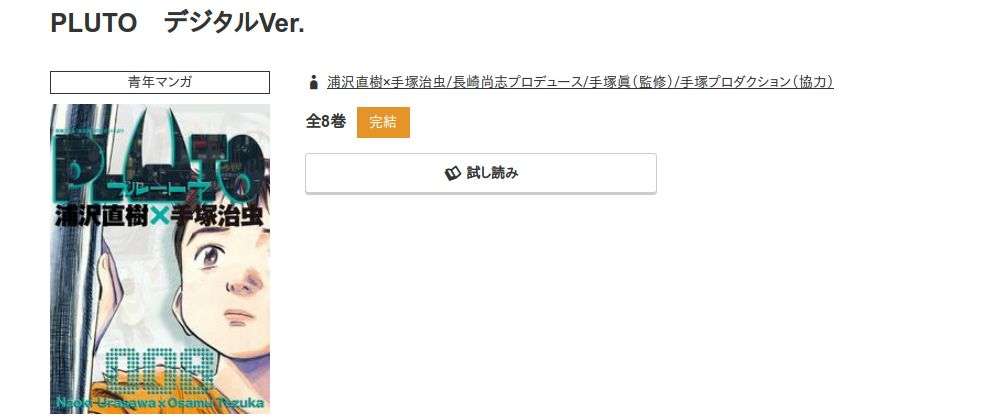 漫画「プルートゥ」の電子書籍の値段は全巻いくら?