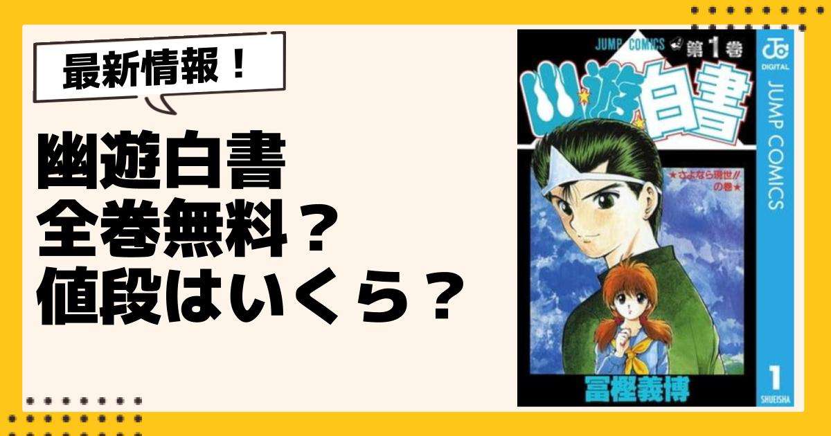 漫画「幽遊白書」は全巻無料で読める?一番多く無料で読めるサイトやアプリはどこ?全巻値段はいくら?電子書籍を全巻安く読めるキャンペーンや、コミック・単行本(新品・中古・レンタル)の最安値情報、漫画ロウ(raw)などの海賊版サイトの注意点、電子書籍からコミック・単行本まで「幽遊白書」を一番お得に楽しむ方法を徹底解説します。