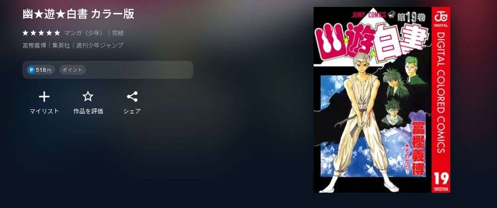 | 幽★遊★白書 カラー版 | 19冊 | 9,842円 | 518円 |